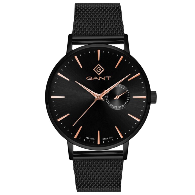 רקע: שחור בעל מחוגים רוזגולד